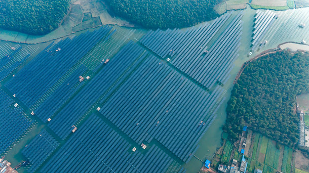 如今,在樂平項目各個建設點,組件安裝工人為擰緊每一顆螺絲,時蹲時站;質檢員沒有任何懈怠,按光伏陣列逐項檢查組件安裝是否牢固、連接線是否規(guī)范;項目管理人員堅持下沉現(xiàn)場,埋頭苦干、真抓實干,著力保障項目務期必成。在余干,所有建設者都在加班加點、緊張有序地保障余干330MW光伏項目順利轉商運行。運維員則活躍在各個站點,在配電室、逆變房、電站控制中心維護、保障著一度度綠電源源不斷地送往千家萬戶……。他們,用汗水澆灌收獲,用實干篤定前行!