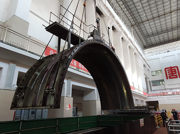 該公司密切關(guān)注本次轉(zhuǎn)輪室吊裝作業(yè),2號(hào)機(jī)組轉(zhuǎn)輪室上半部重約16噸,為確保本次吊裝工作的順利進(jìn)行,該公司根據(jù)現(xiàn)場(chǎng)情況,對(duì)參與本次吊裝工作的全體人員進(jìn)行安全技術(shù)交底,所有工作人員清楚工作內(nèi)容、方法和要求。同時(shí)監(jiān)督吊裝作業(yè)各項(xiàng)措施全部落實(shí)到位,明確各項(xiàng)責(zé)任。在吊裝過(guò)程中,工作負(fù)責(zé)人和橋機(jī)指揮人員密切關(guān)注轉(zhuǎn)輪室擺動(dòng)幅度,及時(shí)進(jìn)行方位調(diào)整,各部位設(shè)專(zhuān)人負(fù)責(zé),各環(huán)節(jié)做到無(wú)縫銜接,最終圓滿完成了2號(hào)機(jī)組轉(zhuǎn)輪室上半部吊裝工作。