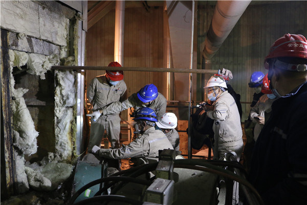此次消缺期間室外最低氣溫達(dá)到零下20度左右,防寒防凍無疑是消缺工作的重中之重,長山廠及時(shí)切換供熱方式,利用化廠備用熱源為家屬區(qū)供熱,同時(shí)也為防寒防凍工作、機(jī)組順利啟動(dòng)提供可靠保證。在此期間,各單位各負(fù)其責(zé),全員行動(dòng),全面開展防寒防凍工作。發(fā)電部作為主體責(zé)任部門,從主任到單元長,從值班員到巡檢員,明確區(qū)域,認(rèn)真排查,每小時(shí)測量廠房所有區(qū)域溫度,同時(shí)對門窗封閉、室外管路保溫等防寒防凍措施進(jìn)行再次確認(rèn);設(shè)備部一方面制定方案組織相關(guān)單位消缺,一方面全面安排部署極寒天氣下的防寒防凍工作;各車間(分場)在生產(chǎn)廠房各層重要部位設(shè)置炭火爐,對熱控表管表計(jì)、電氣電子間盤柜、氨區(qū)管路進(jìn)行檢查,增加伴熱帶,設(shè)置值班人員監(jiān)測環(huán)境溫度,全力以赴確保防寒防凍工作萬無一失。消缺期間,行政事務(wù)部積極做好后勤保障工作,按時(shí)準(zhǔn)備盒飯送到現(xiàn)場,助力消缺工作順利完成。