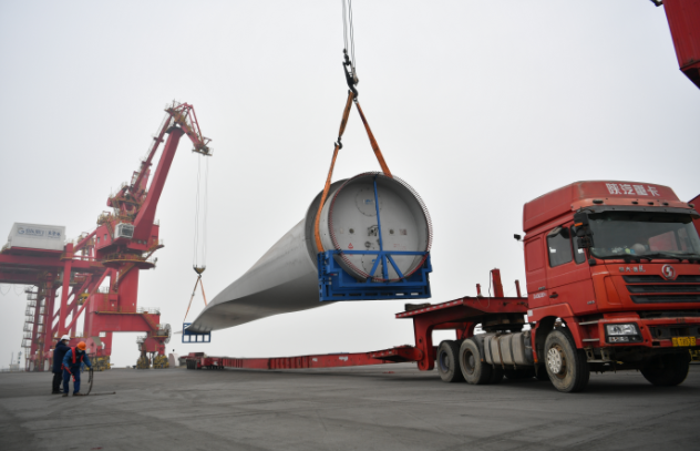 2月12日,3支107米的超長風(fēng)電葉片在山東港口渤海灣港廣利港區(qū)順利完成吊裝作業(yè),這是渤海灣港首次實現(xiàn)風(fēng)電大件設(shè)備全流程自主吊裝作業(yè),標志著渤海灣港正式掌握百米級超長風(fēng)電葉片自主吊裝技術(shù),向著打造專業(yè)的風(fēng)電大件吊裝隊伍邁出堅實一步。