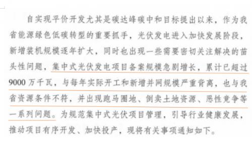 為了證明這一傳聞的真實性,一些媒體還提到了2022年發(fā)布的文件《關于規(guī)范集中式光伏電站項目管理有關事項的通知》。該通知嚴厲指出,集中式光伏發(fā)電項目備案規(guī)模迅速增長,已經(jīng)超過9000萬千瓦,與實際開工和新增并網(wǎng)規(guī)模嚴重不符,也與廣東省的資源條件不匹配,出現(xiàn)了跑馬圈地、倒賣土地資源、惡性競爭等一系列問題。