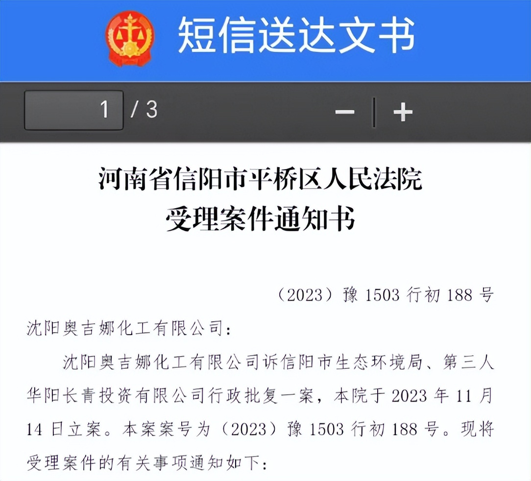2023年10月18日,奧吉娜公司依據(jù)《行政訴訟法》和《行政訴訟法解釋》,將信陽市環(huán)境局和第三人華陽長青公司訴至信陽市平橋區(qū)人民法院,請求法院:1、判決撤銷被告作出的《信陽市生態(tài)環(huán)境局關(guān)于沈陽奧吉娜化工有限公司舉報華陽長青投資有限公司違法經(jīng)營及固始分局不作為、亂作為等問題調(diào)查處理的函》;2、責令被告針對原告于2023年8月3日向被告申訴舉報華陽長青投資有限公司事項,限期進行重新調(diào)查和答復;3、請求人民法院判令被告2023年9月13日調(diào)查處理函認定的廢合成油不應按危險廢物有關(guān)規(guī)定進行管理,違反法律規(guī)章的規(guī)定,無效。(奧吉娜合成油)