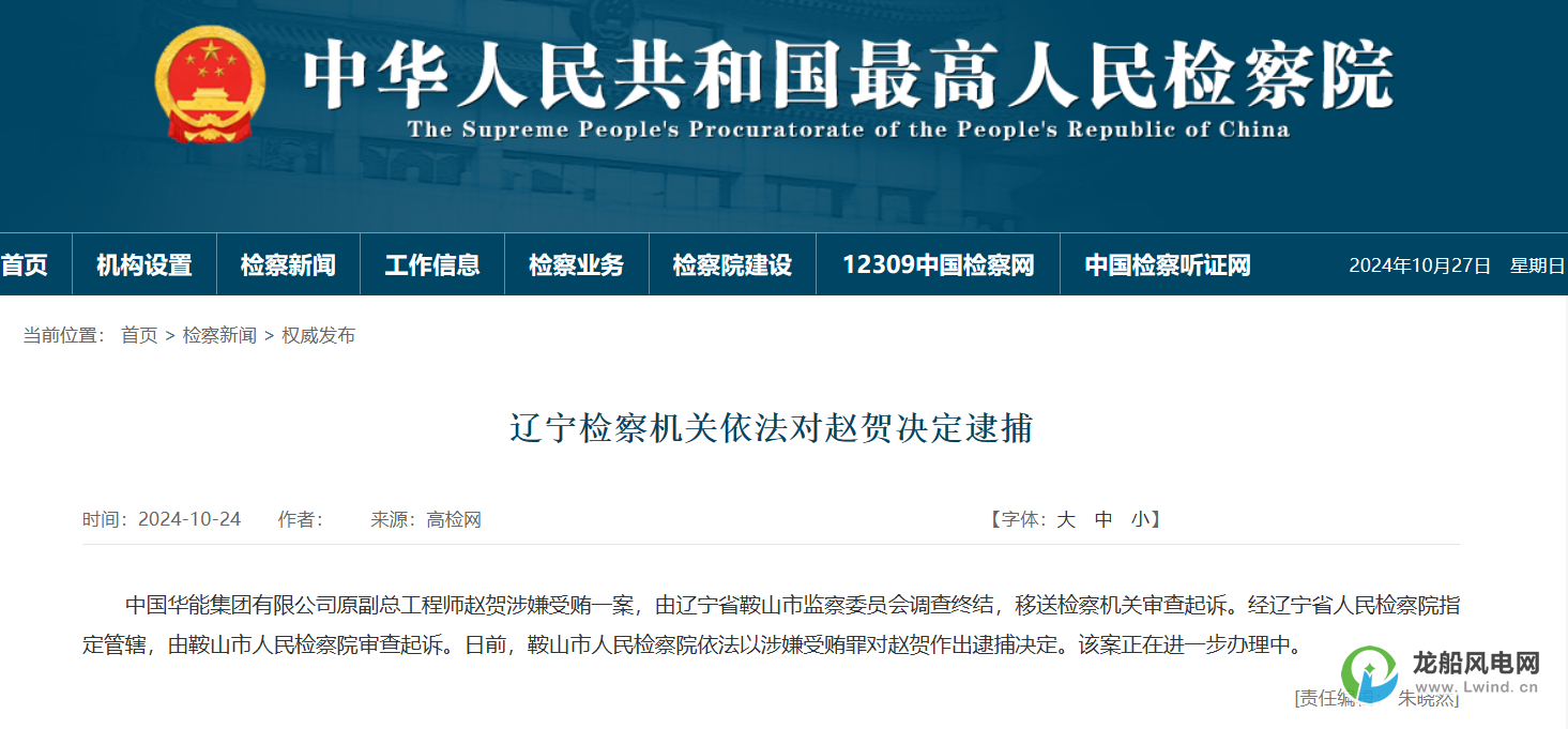 2024年3月28日,據(jù)中國(guó)華能紀(jì)檢監(jiān)察組、遼寧省紀(jì)委監(jiān)委消息:中國(guó)華能副總工程師趙賀涉嫌嚴(yán)重違紀(jì)違法,目前正接受中國(guó)華能紀(jì)檢監(jiān)察組和遼寧省鞍山市監(jiān)委紀(jì)律審查和監(jiān)察調(diào)查。
