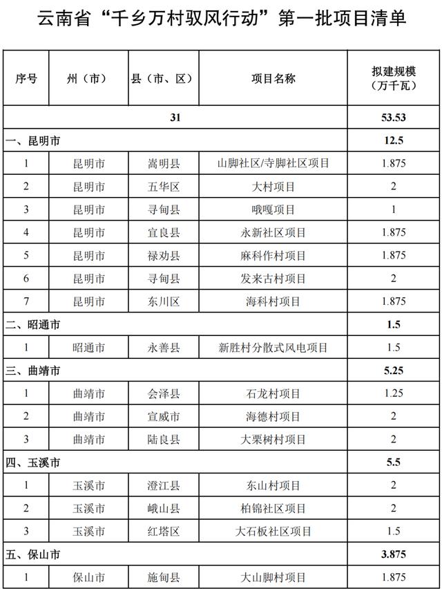 為持續(xù)打造綠色能源強省、大力發(fā)展新能源、助力鄉(xiāng)村振興,云南近日發(fā)布《“千鄉(xiāng)萬村馭風(fēng)行動”第一批項目開發(fā)建設(shè)方案》(以下簡稱《方案》),將開發(fā)建設(shè)第一批共31個風(fēng)電項目,裝機容量53.53萬千瓦。