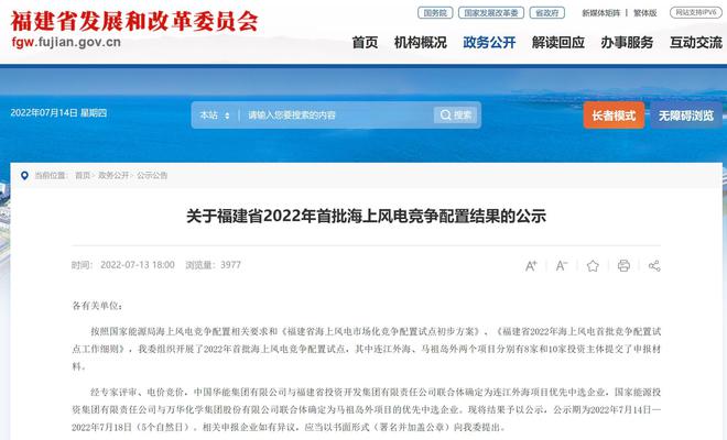 昨日(7月13日),福建省發(fā)改委發(fā)布《關(guān)于福建省2022年首批海上風(fēng)電競(jìng)爭(zhēng)配置結(jié)果的公示》,有消息稱此次福建省海上風(fēng)電項(xiàng)目中標(biāo)的上網(wǎng)電價(jià)低至0.2元/度左右。
