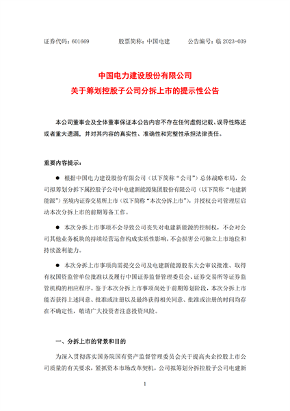 重磅!中國電建擬分拆新能源業(yè)務(wù)獨(dú)立上市!