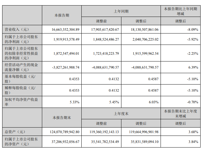 報(bào)告期內(nèi),公司實(shí)現(xiàn)營(yíng)業(yè)收入人民幣1,666,335.23萬(wàn)元,同比下降8.09%;實(shí)現(xiàn)歸屬母公司凈利潤(rùn)人民幣191,991.36萬(wàn)元,同比下降5.92%。