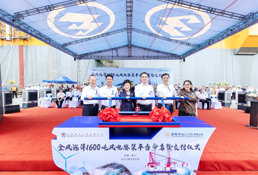 南通市委副書記、代市長張彤,陽江市委副書記、市長余金富,招商局工業(yè)集團黨委副書記、副總經(jīng)理吳四川,金風(fēng)科技集團董事長武鋼,中天科技集團董事長薛濟萍,三峽集團、國家電投集團、中廣核新能源公司等企業(yè)代表出席交付儀式。