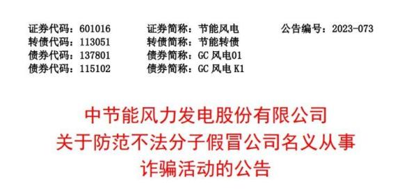 10月23日晚間,節(jié)能風(fēng)電發(fā)布公告提醒廣大群眾防范詐騙活動(dòng)。2022年1月,中節(jié)能風(fēng)力發(fā)電股份有限公司接到群眾反映,有不法分子假冒公司名義,通過(guò)偽造手機(jī)APP、微信群及虛假網(wǎng)絡(luò)平臺(tái)等方式實(shí)施詐騙活動(dòng)。
