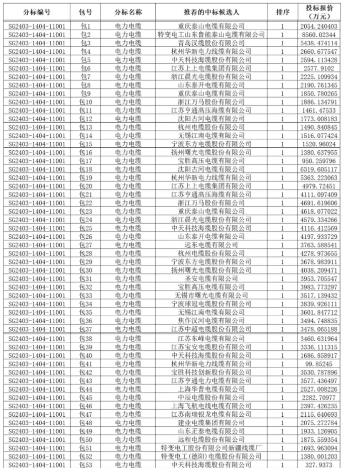 近日,國家電網(wǎng)有限公司2024年第十六批采購(輸變電項(xiàng)目第二次變電設(shè)備(含電纜)招標(biāo)采購)推薦的中標(biāo)候選人公示。根據(jù)此前發(fā)布的招標(biāo)文件,招標(biāo)涵蓋電力電纜、電纜附件、控制電纜、復(fù)核屏蔽封閉絕緣母線等產(chǎn)品。