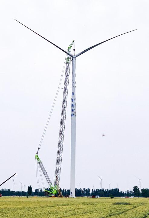 5月24日下午,隨著河南濮陽(yáng)風(fēng)電場(chǎng)3號(hào)風(fēng)機(jī)葉輪組件吊裝就位,標(biāo)志著由中國(guó)能建浙江火電承擔(dān)安裝的濮陽(yáng)500兆瓦風(fēng)電工程?hào)|北片區(qū)和西北片區(qū)共66臺(tái)風(fēng)機(jī)全部吊裝完成。