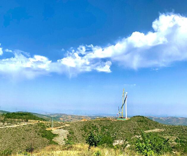 槐花香時麗日晴,風(fēng)起平定山光新。6月6日,由中國能建投資建設(shè)、山西院總承包、山西電建承建的山西平定100兆瓦風(fēng)電項目順首臺風(fēng)機吊裝任務(wù)完成。這是一次非同尋常的吊裝。平定風(fēng)電項目建設(shè)容量100兆瓦,安裝40臺海裝2.5兆瓦風(fēng)機,機位大多分布在風(fēng)場各獨立山頭上,施工區(qū)域海拔高、范圍廣、吊裝難度大。