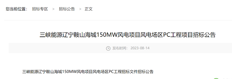 三峽能源遼寧鞍山海城150MW風(fēng)電項目: