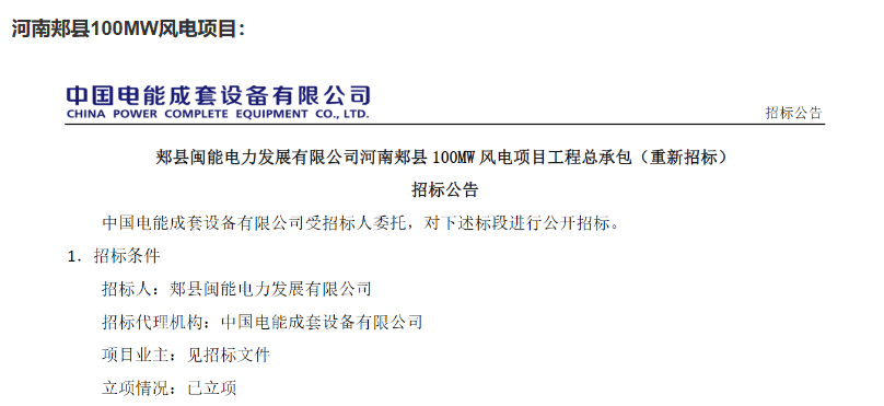 公告顯示,郟縣 100MW風電項目位于河南省平頂山市郟縣,規(guī)劃裝機容量為 100MW,擬安裝20臺5.0MW風電機組,新建 220kV 升壓站一座,并配置41.4MW/82.56MWh磷酸鐵鋰電池儲能。