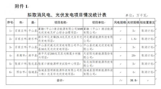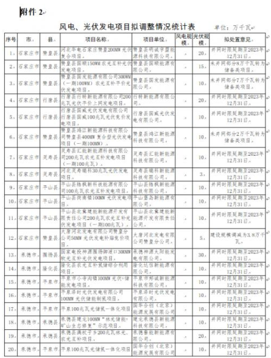 河北擬調(diào)整2022年到期風(fēng)光項(xiàng)目公示 : 取消388MW、調(diào)整4.484GW!