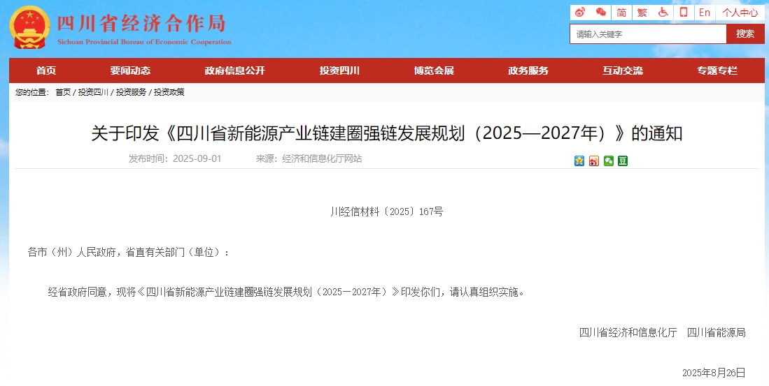 近日,四川省經(jīng)濟(jì)和信息化廳聯(lián)合省能源局印發(fā)《四川省新能源產(chǎn)業(yè)鏈建圈強(qiáng)鏈發(fā)展規(guī)劃(2025—2027年)》(以下簡(jiǎn)稱(chēng)《規(guī)劃》)。《規(guī)劃》聚焦光伏、風(fēng)電、氫能、新型儲(chǔ)能等重點(diǎn)領(lǐng)域的產(chǎn)業(yè)發(fā)展綜合實(shí)力提升,提出到2027年,四川省新能源產(chǎn)業(yè)鏈營(yíng)業(yè)收入超過(guò)5000億元,力爭(zhēng)達(dá)到6000億元的發(fā)展目標(biāo)。