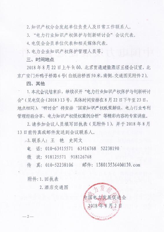 關(guān)于召開中國(guó)電力發(fā)展促進(jìn)會(huì)知識(shí)產(chǎn)權(quán)分會(huì)成立大會(huì)的通知
