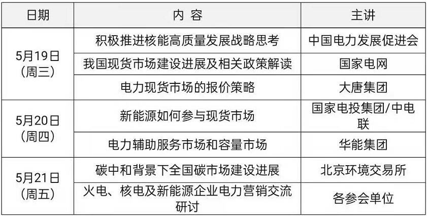 為幫助發(fā)電企業(yè)、售電公司更好地了解現貨交易規(guī)則、試點省份營運現狀、市場營銷策略、電力輔助服務等情況,中國電力發(fā)展促進會計劃舉辦“2021年電力現貨市場培訓研討會”。