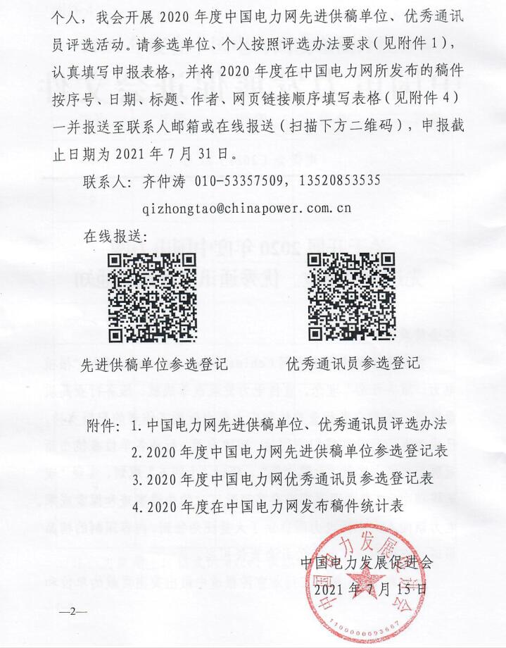 關(guān)于開展“中國電力網(wǎng)2020年度先進(jìn)供稿單位、優(yōu)秀通訊員”評選活動的通知