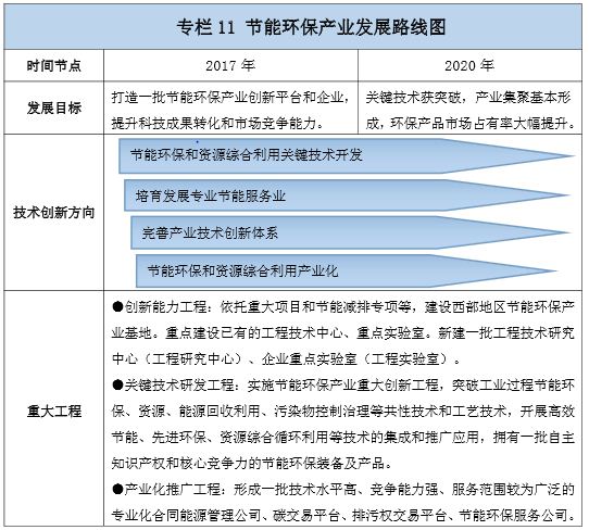 《貴州省“十三五”新興產(chǎn)業(yè)發(fā)展規(guī)劃》提出,著力突破鋼鐵冶金、有色金屬冶金、磷化工、煤化工、火電等原材料產(chǎn)業(yè)能耗高、污染大,以及固廢資源綜合利用附加值低等技術(shù)難題,開發(fā)節(jié)能環(huán)保產(chǎn)業(yè)鏈中的關(guān)鍵共性技術(shù),形成一批擁有自主核心技術(shù)的節(jié)能環(huán)保骨干企業(yè)和一批比較優(yōu)勢明顯、產(chǎn)業(yè)配套完善、有序集聚發(fā)展的先進節(jié)能環(huán)保產(chǎn)業(yè)基地;在資源綜合利用方面,大力發(fā)展源頭減量、資源化、零排放和產(chǎn)業(yè)鏈接等新技術(shù),推進產(chǎn)業(yè)化,提高資源產(chǎn)出率。著力發(fā)展再制造產(chǎn)業(yè),實施高端再制造、智能再制造、在役再制造,推進再生產(chǎn)產(chǎn)品認定,促進再制造業(yè)持續(xù)健康發(fā)展,到2020年,節(jié)能環(huán)保產(chǎn)業(yè)總產(chǎn)值達到140億元。重點發(fā)展先進環(huán)保產(chǎn)業(yè)。