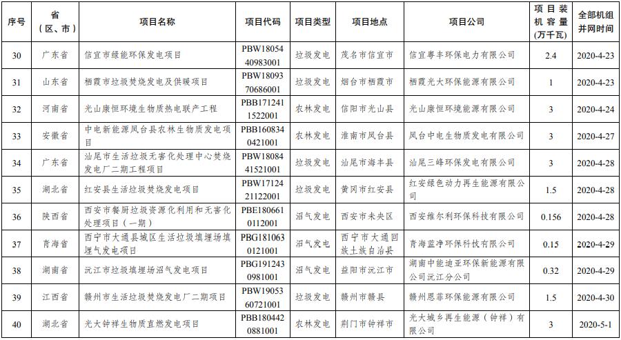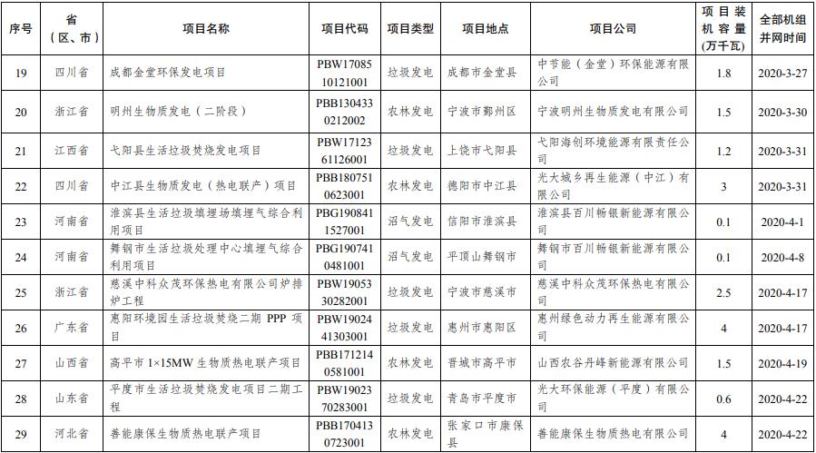 關(guān)于公布2020年生物質(zhì)發(fā)電中央補貼項目申報結(jié)果的通知