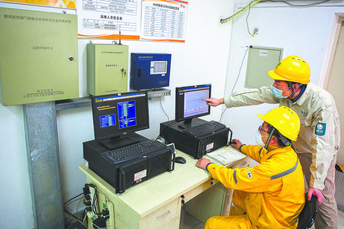 超低排放改造也被稱為“超凈排放”“近零排放”,是指對(duì)燃煤發(fā)電機(jī)組環(huán)保設(shè)施做進(jìn)一步提效改造,使其污染物排放水平達(dá)到燃?xì)鈾C(jī)組標(biāo)準(zhǔn),即用煤發(fā)電跟用天然氣發(fā)電的污染物排放水平相當(dāng)。按國(guó)家標(biāo)準(zhǔn),“十三五”期間,燃煤發(fā)電機(jī)組的二氧化硫、氮氧化物、煙塵三項(xiàng)主要污染物排放標(biāo)準(zhǔn)要分別從100毫克/立方米、100毫克/立方米、20毫克/立方米,壓縮到35毫克/立方米、50毫克/立方米、10毫克/立方米。改造是否到位,成效是否可靠,數(shù)據(jù)聯(lián)網(wǎng)工作是檢驗(yàn)達(dá)標(biāo)和政策落地的重要環(huán)節(jié)。近日,記者走進(jìn)江蘇發(fā)電企業(yè)環(huán)保數(shù)據(jù)匯總分析的“中樞”,一探全省火力發(fā)電企業(yè)節(jié)能減排成效。