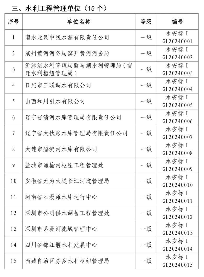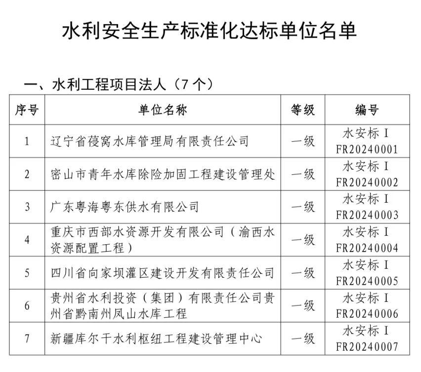 水利部公布水利安全生產(chǎn)標(biāo)準(zhǔn)化達(dá)標(biāo)單位名單