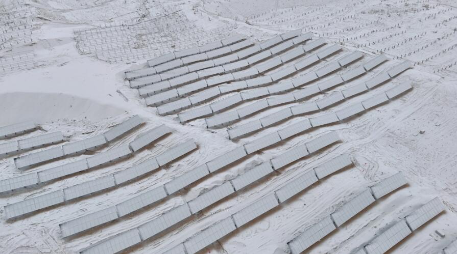 大年初三的早晨,沙漠被一場罕見的大雪覆蓋。在伊犁尼勒克400萬千瓦風電光伏項目的建設現(xiàn)場,先鋒隊隊員踩著積雪,站在被雪覆蓋的沙丘上,檢查著已打好的光伏樁整齊地排列在沙地里,等待著節(jié)后光伏板的安裝。