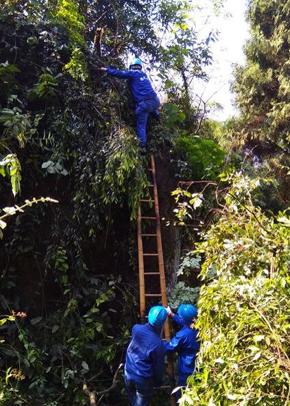 按照公司統(tǒng)一安排,松林供電所積極與高坪區(qū)老君、青蓮街道辦黨委、政府溝通協(xié)調(diào),得到了他們的大力支持和配合。從5月1日開始,供電所每天出動16名員工,全副武裝帶上專業(yè)排障工具,頭頂烈日,翻山越嶺、披荊斬棘地全力清排樹障。竹梯、鐮刀、彎刀、油鋸、砍刀......為了清除樹障,他們用上了各種工具。員工們臉上、手臂上、腿上,到處可見劃傷的痕跡,工作服濕了又干、干了又濕。