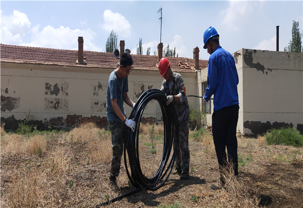 在了解情況后,烏海電業(yè)局工會扶貧辦積極與養(yǎng)殖場當(dāng)?shù)氐牧逅墓╇姺志謱?。分局工作人員立刻前往逸夫小學(xué)扶貧養(yǎng)殖基地對整個院子進(jìn)行了巡視,確定了電纜敷設(shè)的方案以及配電室的接線方式。第二天正值周末,六五四分局工作人員便進(jìn)場施工。9名工作人員分工合理同時開工,鋪電纜、沿墻固定、埋電纜、配電室布線接電。烈日炎炎,在這場耐力與體力的考驗中,即使汗水浸濕了大家的衣服也絲毫沒有拖慢工作的進(jìn)程,工藝也沒有因此打了折扣,最后大家齊心協(xié)力共同完成了420米電纜鋪設(shè)及接火停電的工作。