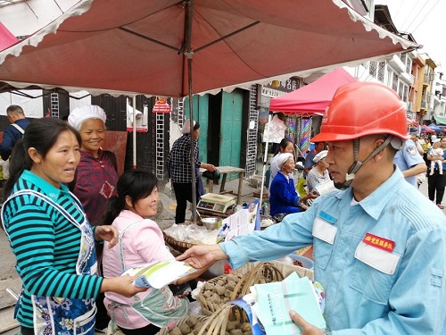 圖為謝壩供電所在市坪鄉(xiāng)街上開展安全用電、節(jié)約用電宣傳活動