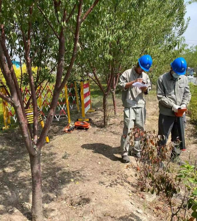 分局了解相關(guān)情況后,立即組織配電檢修試驗(yàn)班人員攜帶儀器前往現(xiàn)場。經(jīng)現(xiàn)場勘察了解,該校區(qū)擴(kuò)建區(qū)域涉及原居民用房及垃圾場所在地,位于小區(qū)、商業(yè)樓和沙河一小北區(qū)中間地帶,用戶較多,地下線路比較復(fù)雜,且部分電纜位于擴(kuò)建項(xiàng)目未拆除墻體內(nèi)側(cè),為保障電纜在施工過程中不受外力破壞、確保周圍用戶用電不被影響,工作人員在征得用戶同意后,對內(nèi)外側(cè)整段電纜進(jìn)行了探測。工作人員熟練調(diào)試儀器參數(shù),沿著電纜起點(diǎn)逐步探測,耐心排除干擾信號(hào),確保精準(zhǔn)判斷電纜走向。頭頂夏日灼熱陽光,在兩個(gè)小時(shí)的緊張工作后,終于確定了該區(qū)域所有電纜路徑及埋深,此時(shí)已過了中午。該小學(xué)擴(kuò)建項(xiàng)目負(fù)責(zé)人向分局工作人表達(dá)了感謝:“這么大熱天,真是辛苦你們了,要不是有你們這么專業(yè)的儀器,我們施工風(fēng)險(xiǎn)肯定會(huì)增加,工期也可能會(huì)有延誤,供電局的技術(shù)和服務(wù)真是沒的說。”