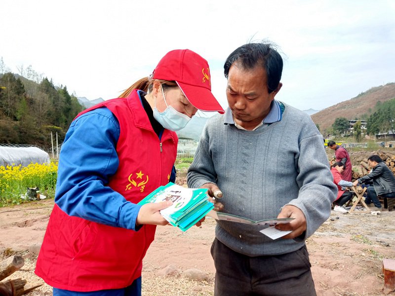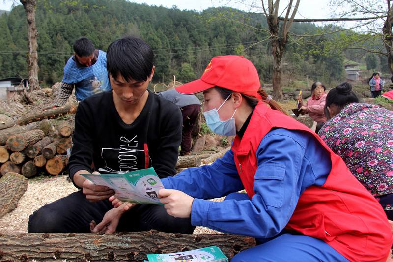 圖為:2020年3月9日,在位于四川省巴中市通江縣陳河鄉(xiāng)陳家壩村的四川裕德源生態(tài)科技有限公司陳河基地里,國網通江縣供電公司“紅星”志愿者為企業(yè)工人講解安全用電常識。程聰攝