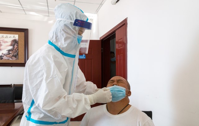 此次核酸檢測方式為鼻咽拭子。該院體檢中心主任孫逾介紹,人體咽部分區(qū)包括鼻咽、口咽、喉咽,三者的黏膜是連續(xù)的,均屬于上呼吸道區(qū)域。采用鼻咽拭子取樣時,棉簽可以在咽部停留較長的時間,操作者不需直視患者口腔,暴露風(fēng)險低。接受檢測人員下拉口罩僅露出鼻孔,基本不出現(xiàn)咽反射,能夠獲得足量的采集標(biāo)本,有助于提高核酸檢測的準(zhǔn)確率。