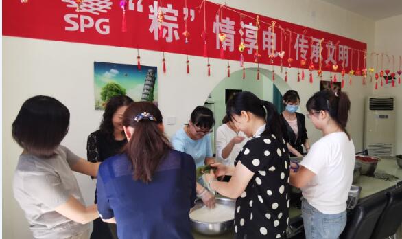 職工餐廳活動現(xiàn)場,一片歡聲笑語、喜慶祥和的畫面,有手工制作特長的女職工手把手地教大家包粽子,大家圍坐在一起,學(xué)得認真、干得起勁、忙得不亦樂乎。折葉、填米、放棗、成形、纏線。剛起手學(xué)做的員工,做出了形狀怪異的“棕子”,使大家樂開懷。有特長的員工做的粽子造型規(guī)則時,又忍不住小得意,將自己與滿意的“作品”合影留念,小小的粽子傳遞著濃濃的同事情誼,活動使大家在相互協(xié)作的包粽子過程中,增進了友情,拉近了距離,同享節(jié)日歡樂。