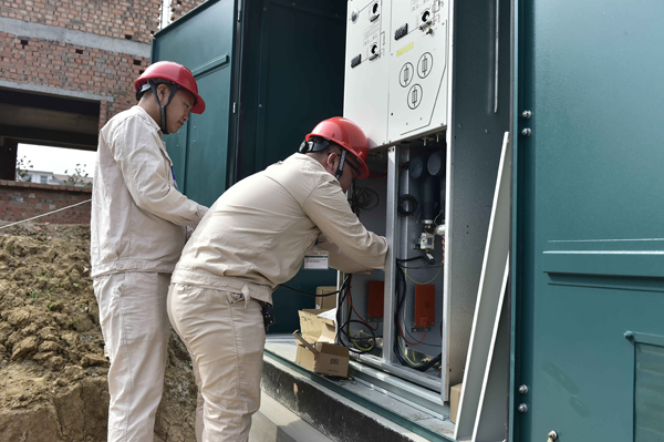 9月22日,江蘇連云港東??h供電公司施工人員在石梁河鎮(zhèn)南辰城鄉(xiāng)融合配網(wǎng)工程安裝500千伏安箱變。