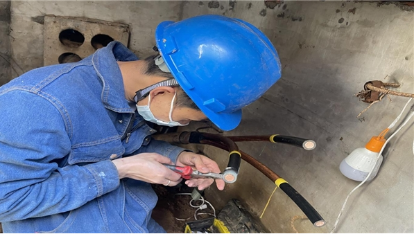 “電小二帶好,電纜穿刺儀備好電池,進入電纜井內(nèi)一定要注意安全,時間一定是考慮夠的,不要心急!”配電檢修試驗班班長武志祥千叮嚀萬囑咐。負責進行熔接接頭的是具有多次工作經(jīng)驗的小劉,“上次寨916線的電纜頭就是我做的,這次都有經(jīng)驗了,我會很注意的。”電纜溝內(nèi)濕氣顯得與春天格格不入,“收緊”了所有現(xiàn)場檢修人員的后頸,濕冷的潮氣使他們寒顫不斷,可手里的工作卻沒有因此而遲緩,大家相互提醒,默契配合施工,一刻不停歇。熟練的一層層剝開外護層、導電層、絕緣層......拆除、更換、接入,不疏忽任何一個細節(jié),他們分工明確,密切協(xié)調(diào),試驗設備、記錄數(shù)據(jù)、核對相序,有條不紊。經(jīng)過近9個小時的連續(xù)奮戰(zhàn),電纜熔接接頭全部按照工藝完成更換工作。