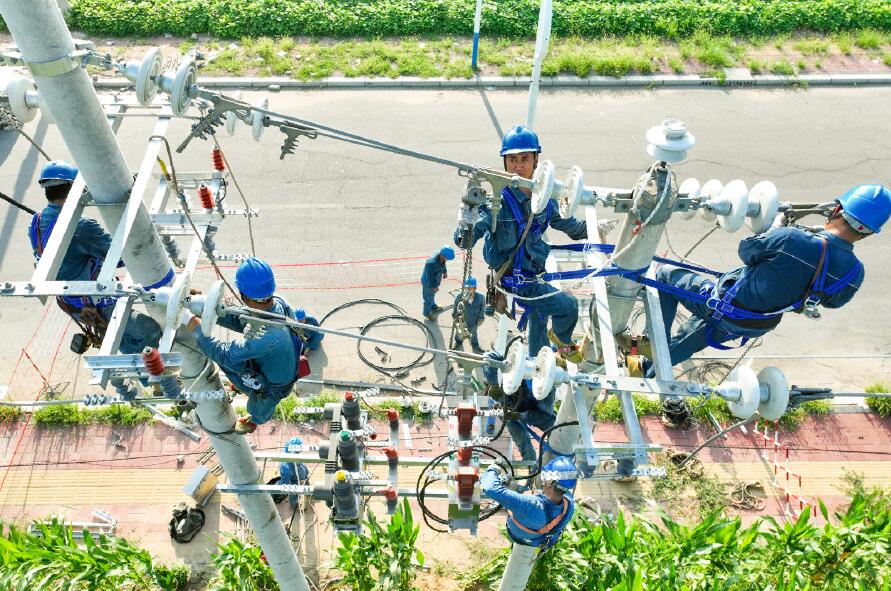 入夏以來,持續(xù)的高溫天氣讓電網(wǎng)負(fù)荷面臨極大“烤”驗。國網(wǎng)滑縣供電公司加快推進電網(wǎng)升級補強、安全隱患治理等工作,切實提升電網(wǎng)運行質(zhì)量和供電可靠性,為廣大用戶清涼度夏提供充足電力保障。當(dāng)天,在10千伏留賈線新建工程現(xiàn)場,作業(yè)人員穿戴好全套安全防護用具,動作熟練地爬上電桿,嚴(yán)格按照操作標(biāo)準(zhǔn)逐項完成接開關(guān)引流線、安裝真空開關(guān)等一系列操作。天氣炎熱加上施工作業(yè),工作人員的臉上很快就冒出了豆大的汗珠,他們顧不得擦去,只專注于手中的操作。他們從早上6:30分開始,經(jīng)過6個多小時的揮汗奮戰(zhàn),12:25分,10千伏留賈線路運成功,為附近村民生產(chǎn)生活用電提供堅強電力能源保障,確保“清涼”度夏。