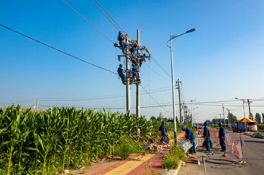 8月4日,在河南滑縣留固鎮(zhèn)南街村玉米田里,10千伏留賈線路升級改造現(xiàn)場,趙瑞杰、張連青等15名電力工人正在加緊作業(yè),爭取盡早完成工作任務(wù),為附近村民生產(chǎn)生活用電提供堅強電力能源保障,確保“清涼”度夏。