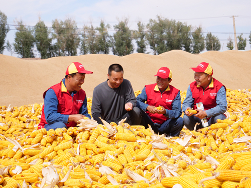 國家電網(wǎng)甘肅電力連心橋(定西)共產(chǎn)黨員服務(wù)隊和村民共慶豐收。