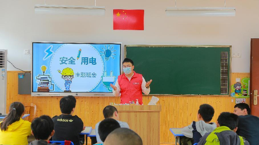 在“電力愛心教室”公益品牌項(xiàng)目首個(gè)試點(diǎn)校——白沙電力希望小學(xué),國網(wǎng)福建電力志愿者講解安全用電知識(shí)