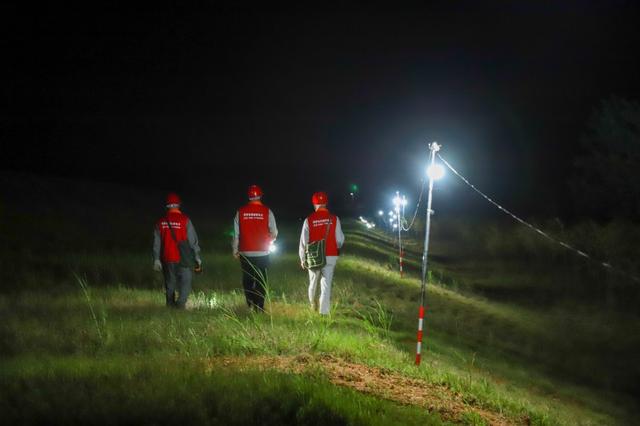 運輸材料、組裝燈泡、打樁架線、爬桿送電……突擊隊員們克服雜草叢生、滿是泥濘的不利工作條件,于7月1日6時“點亮”江心鄉(xiāng)堤壩。據(jù)統(tǒng)計,突擊隊員們共計安裝防雨戶外燈300余盞,敷設照明臨時線路約12千米。