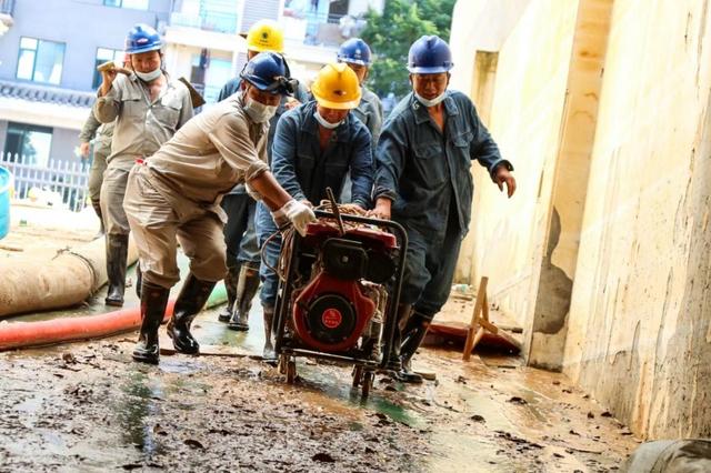 國網湖南婁底供電公司員工在平江縣桂花學校搶修中運送發(fā)電機。