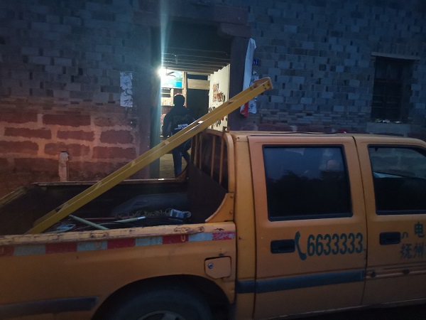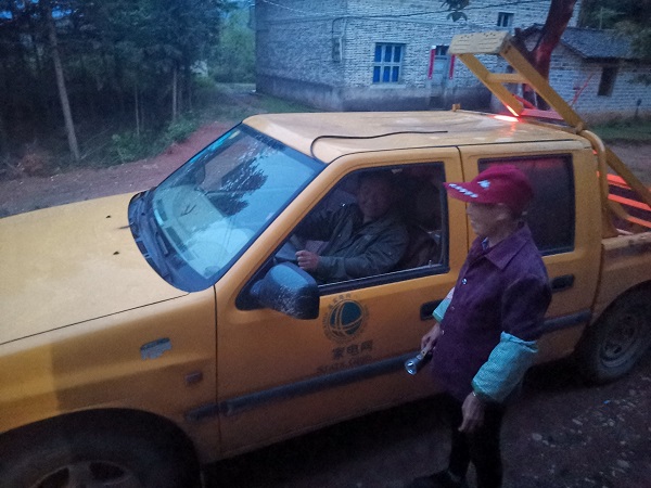 “太好了,你們來了,這下晚上可以不用摸黑了……”18時55分,經(jīng)過25分鐘的車程,陳文清班長和班員到達陳家蕪頭村,陳德文和老伴正打 著手電筒,看到供電搶修車的到來,很是激動。