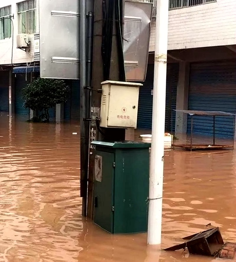 中午12時25分,沒過涵水鎮(zhèn)街道的洪水逐漸退去,國網(wǎng)平昌縣供電公司共產(chǎn)黨員服務隊迅速進入現(xiàn)場對受損電力設備進行排查檢修,排除安全隱患,經(jīng)過連續(xù)5個多小時的緊急搶修,更換修復受損設備17臺,排除安全隱患53處,7個停電臺區(qū)全部恢復用電。