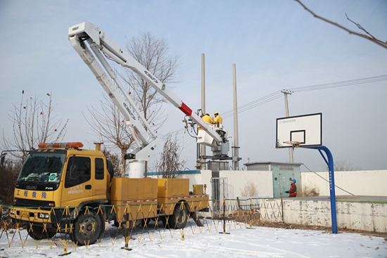 中國電力網(wǎng)訊 1月5日,在濰坊壽光市紀(jì)臺鎮(zhèn)堠子坡村,國網(wǎng)壽光市供電公司帶電作業(yè)人員在寒潮來臨之前,對該村存在安全隱患一臺250千伏安變壓器更換跌落開關(guān),及時消除設(shè)備運行隱患,保障迎峰度冬期間居民用電無憂。