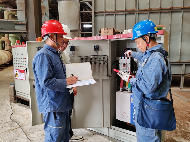 圖為南方電網(wǎng)興仁供電局工作人員對中義新能源燃燒顆粒廠配電設(shè)施進(jìn)行電壓負(fù)荷測量,制定“錯峰用電優(yōu)化方案”。新能源燃燒顆粒在制作中對于持續(xù)粉碎、溫控烘干、聚米成粒的工業(yè)流程要求很高,長時間高負(fù)荷運(yùn)轉(zhuǎn)的機(jī)械設(shè)備和用電高峰期的電壓穩(wěn)定性及電價成本成了該企業(yè)的一個生產(chǎn)痛點(diǎn)。