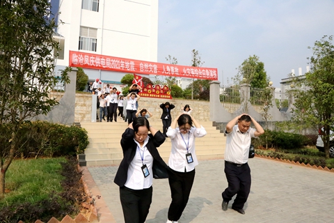 上午10時許,鳳慶供電局演練總指揮在消防控制室發(fā)出演練信號,演練模擬鳳慶主城區(qū)發(fā)生6.5級破壞性地震,鳳慶供電局辦公樓開始搖晃,樓內(nèi)所有人員立即采取避震措施。避震一分鐘后,從一樓到四樓,各樓層緊急疏散負責(zé)人冷靜組織本樓層人員按最近、最佳疏散路線撤離至安全聚集地,快速清點人數(shù),并向總指揮匯報人員撤離情況。