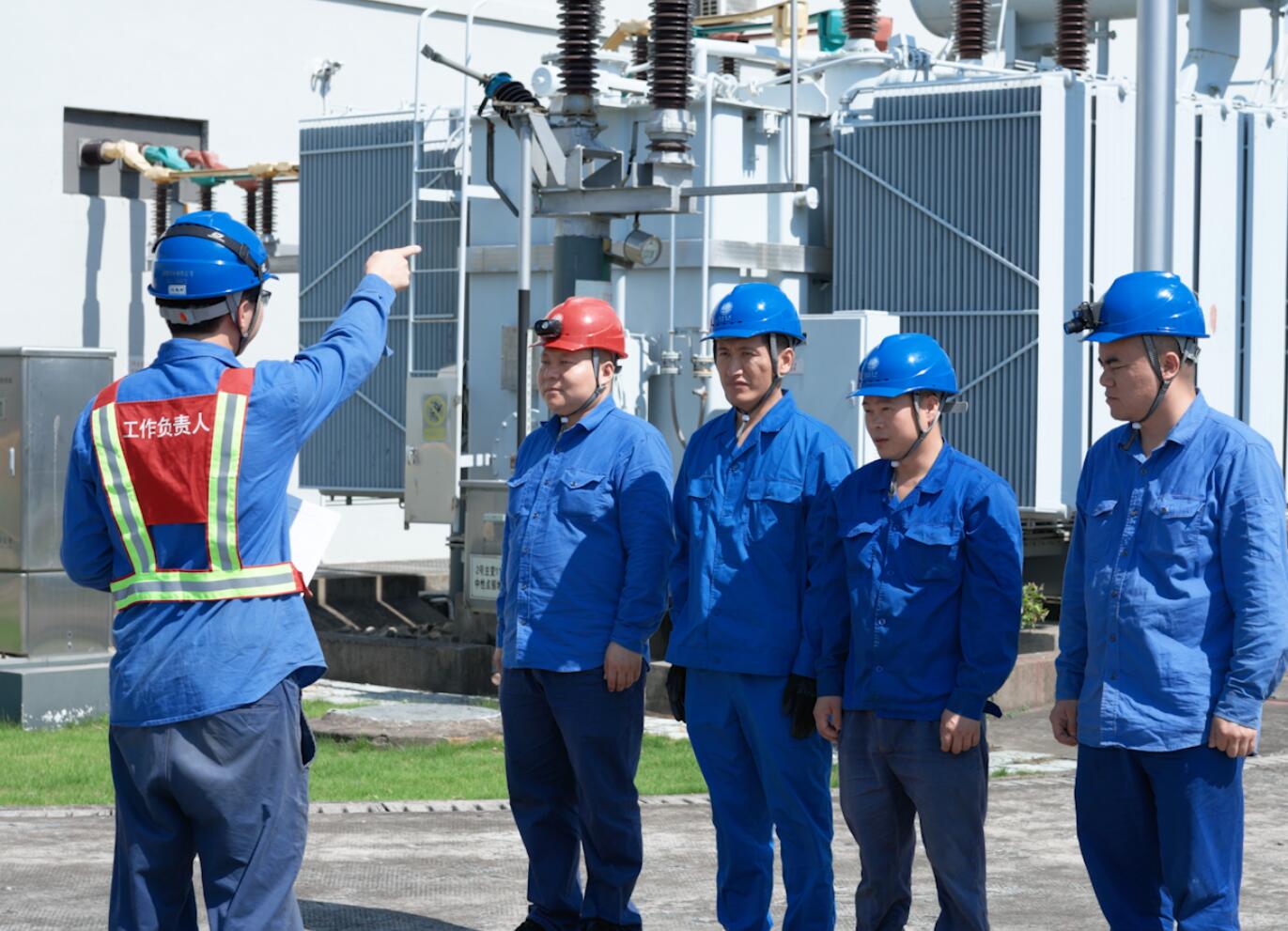 在110千伏穴湖變工作現(xiàn)場,在工作負責(zé)人告知檢修人員此次工作內(nèi)容、危險點及安全防范措施之后,檢修人員才按照工作流程有條不紊地推進。陽光肆意照射在戶外變壓器上,蒸騰出滾滾熱浪,在室外近40度高溫炙烤下,所有檢修人員顧不上休息,全身心投入工作當(dāng)中,消除變電站安全隱患,為其穩(wěn)定運行提供強有力的保障。