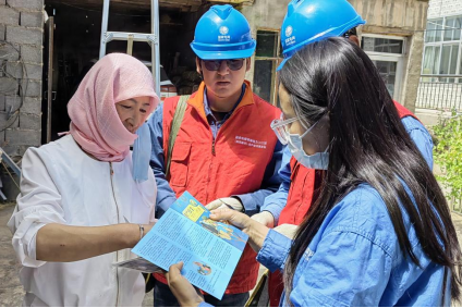 圖為駐村電力網(wǎng)格員為村民講解安全用電知識